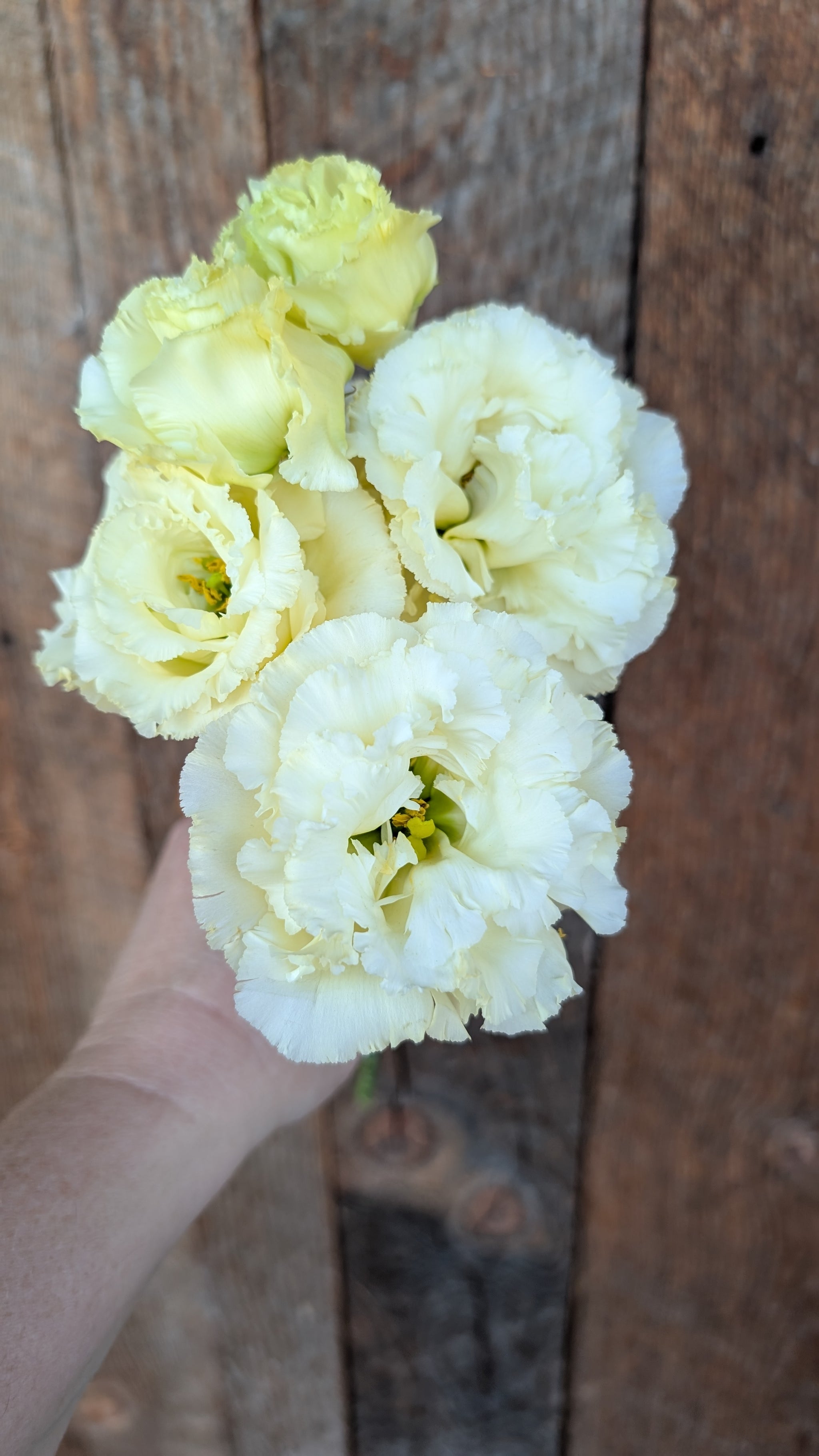Ruffly double soft yellow blooms. Group 3, blooms after other groups. Corelli's are typically some of the tallest lisianthus. Height 24-36"